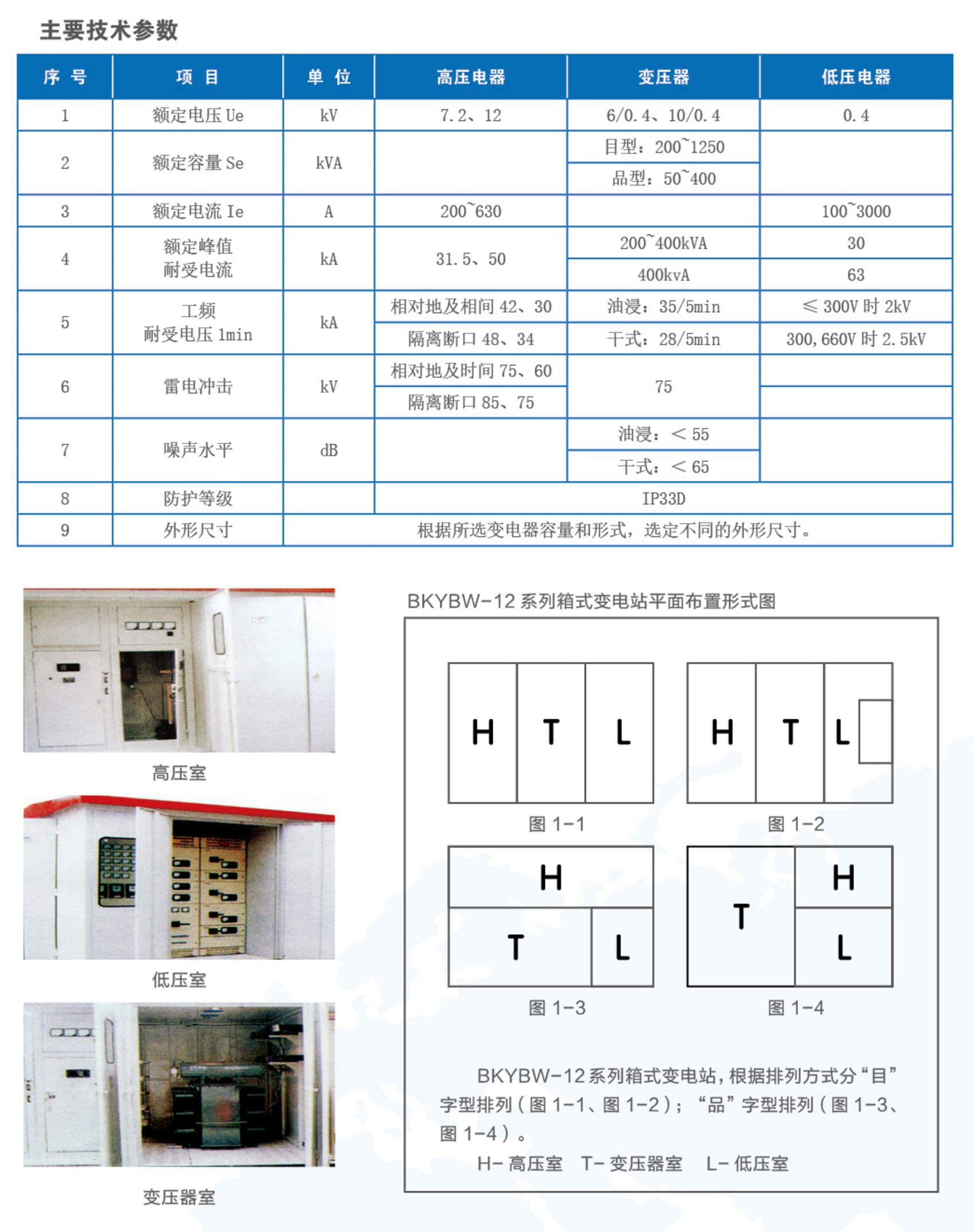 BKYBW-12系列交流箱式變電站,是將高壓電器設(shè)備、變壓器、低壓電器設(shè)備等組合成緊湊型成套配電裝置,用于城市高層建筑、城鄉(xiāng)建筑,居民小區(qū)、高新技術(shù)開發(fā)區(qū)、中小型工廠、礦山油田以及臨時施工用電等場所,作配電系統(tǒng)中接受和分配電能之用。BKYBW-12系列箱式變電站,具有成套性強(qiáng)、體積小、結(jié)構(gòu)緊湊、運(yùn)行安全可靠、維護(hù)方便、以及可移動等特點(diǎn),與常規(guī)土建式變電站相比,同容量的箱式變電站占地面積通常僅為常規(guī)變電站的1/10~1/5,大大減少了設(shè)計(jì)工作量及施工量,減少了建設(shè)費(fèi)用。在配電系統(tǒng)中,可用于環(huán)網(wǎng)配電系統(tǒng),也可用于雙電源或放射終端配電系統(tǒng),是目前城鄉(xiāng)變電站建設(shè)和改造的新型成套設(shè)備。