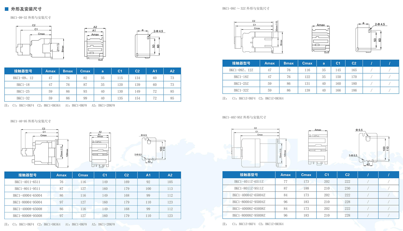 BKC1-09~95系列交流接觸器,主要用于交流50Hz(或60Hz),額定絕緣電壓為690V,在AC-3使用類別下額定工作電壓為380V時(shí)額定工作電流為9A~95A的電路中,供遠(yuǎn)距離接通與分?jǐn)嚯娐芳邦l繁起動(dòng)、控制交流電動(dòng)機(jī);并可與適當(dāng)?shù)臒徇^載繼電器組成電磁起動(dòng)器,以保護(hù)可能發(fā)生過負(fù)荷的電路。產(chǎn)品符合標(biāo)準(zhǔn):IEC 60947-4,GB/T 14048.4,IEC 60947-5,GB/T 14048.5